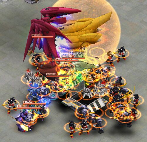 わちゃわちゃ遊んでいるユニット達。 機体がある程度以上居ると、近くに敵が居ても反応しないものが出てくる。処理落ちを避けるためか? わー隕石だー!(アレハンドロ・コーナーが呼んでいる訳ではない) アクシズどーん。